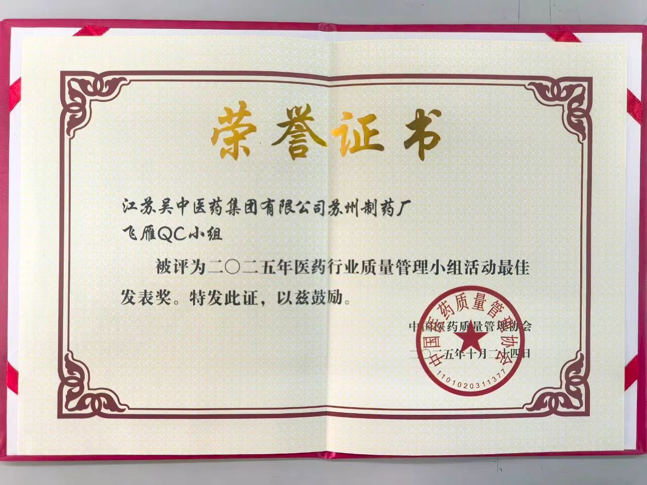 展望未来,吴中医药苏州制药厂将在QC小组活动现有成绩基础上,深化质量管理创新实践,完善质量管理体系,通过技术与管理创新双轮驱动,为医药行业高质量发展贡献“吴中方案”与“吴中智慧”。企业将坚持质量立企理念,以优质产品和完善服务履行社会责任,为守护群众生命健康贡献更大力量。