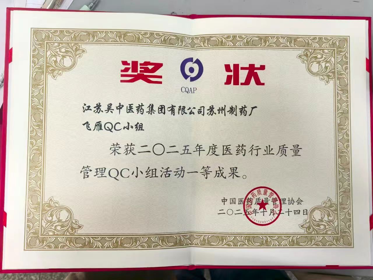 喜报丨吴中医药苏州制药厂荣获全国医药行业QC小组成果评比双奖